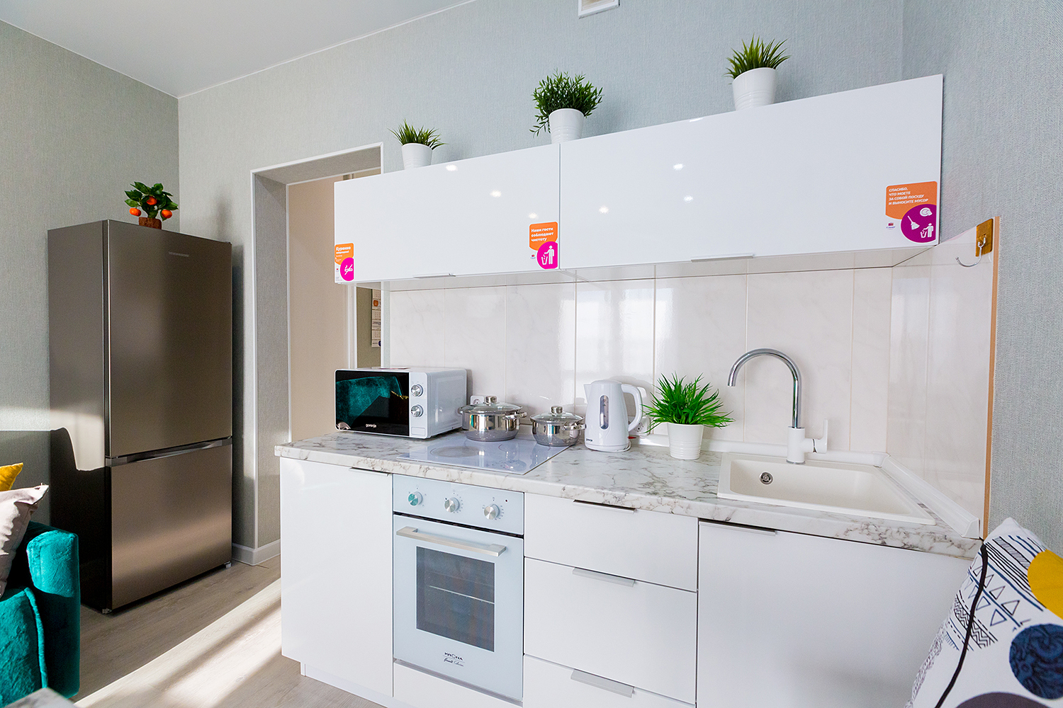 Полностью оборудованные кухни с посудой и столовыми приборами.