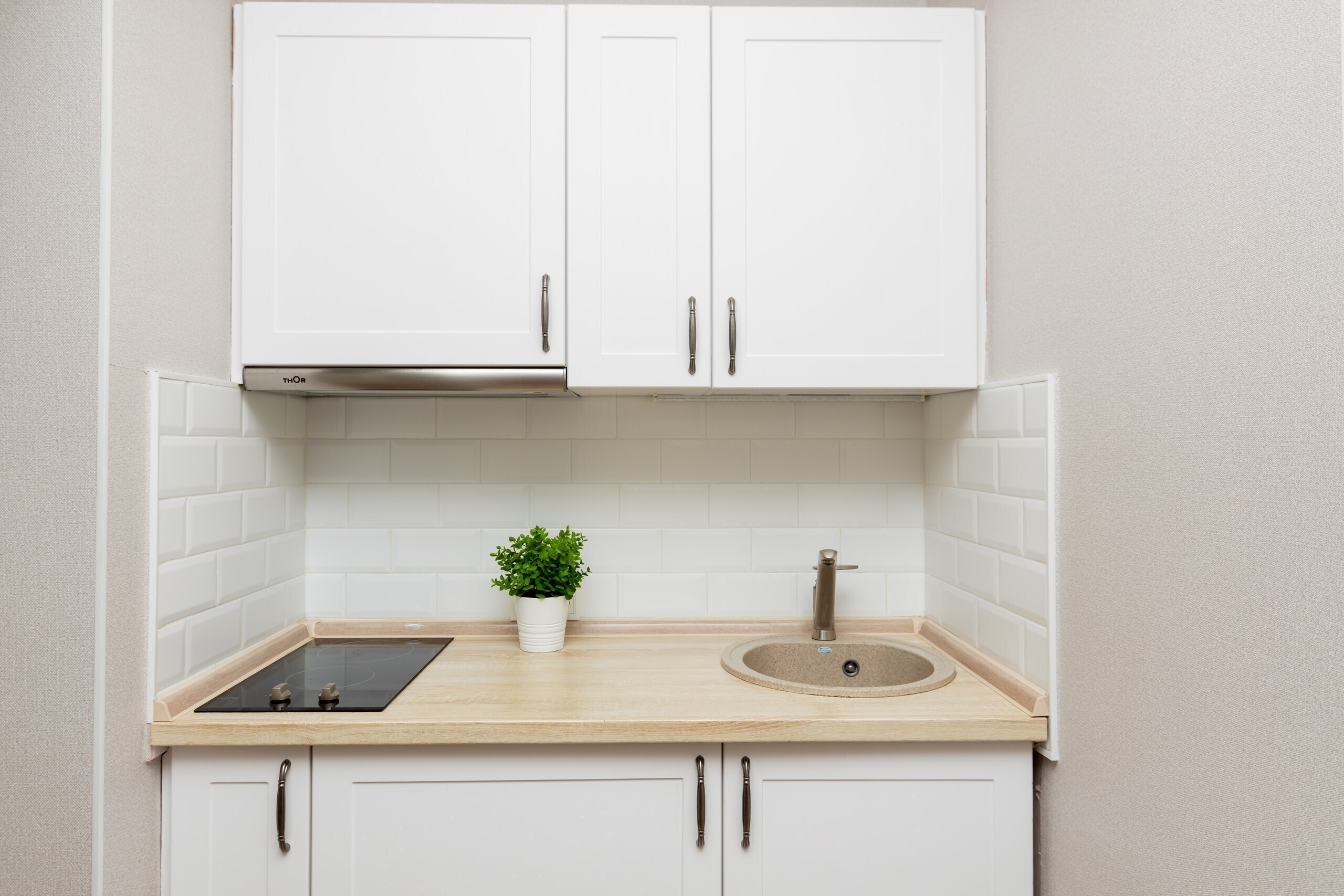 Кухня оснащена всей необходимой техникой: электроплита, микроволновая печь, холодильник, электрочайник, полный набор посуды и столовых приборов.