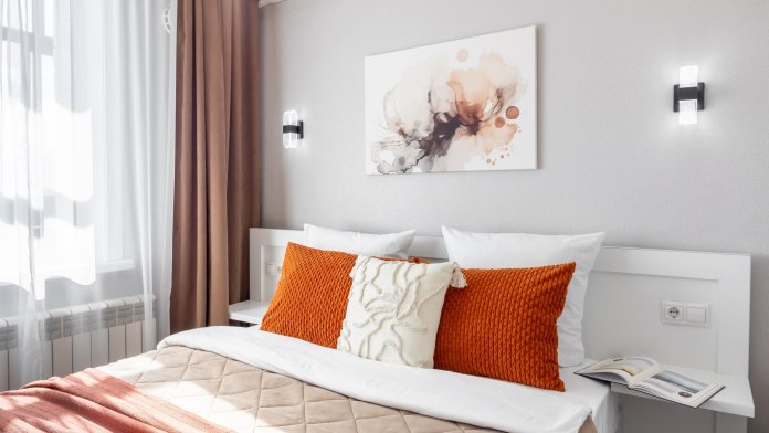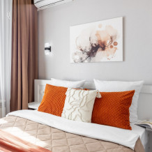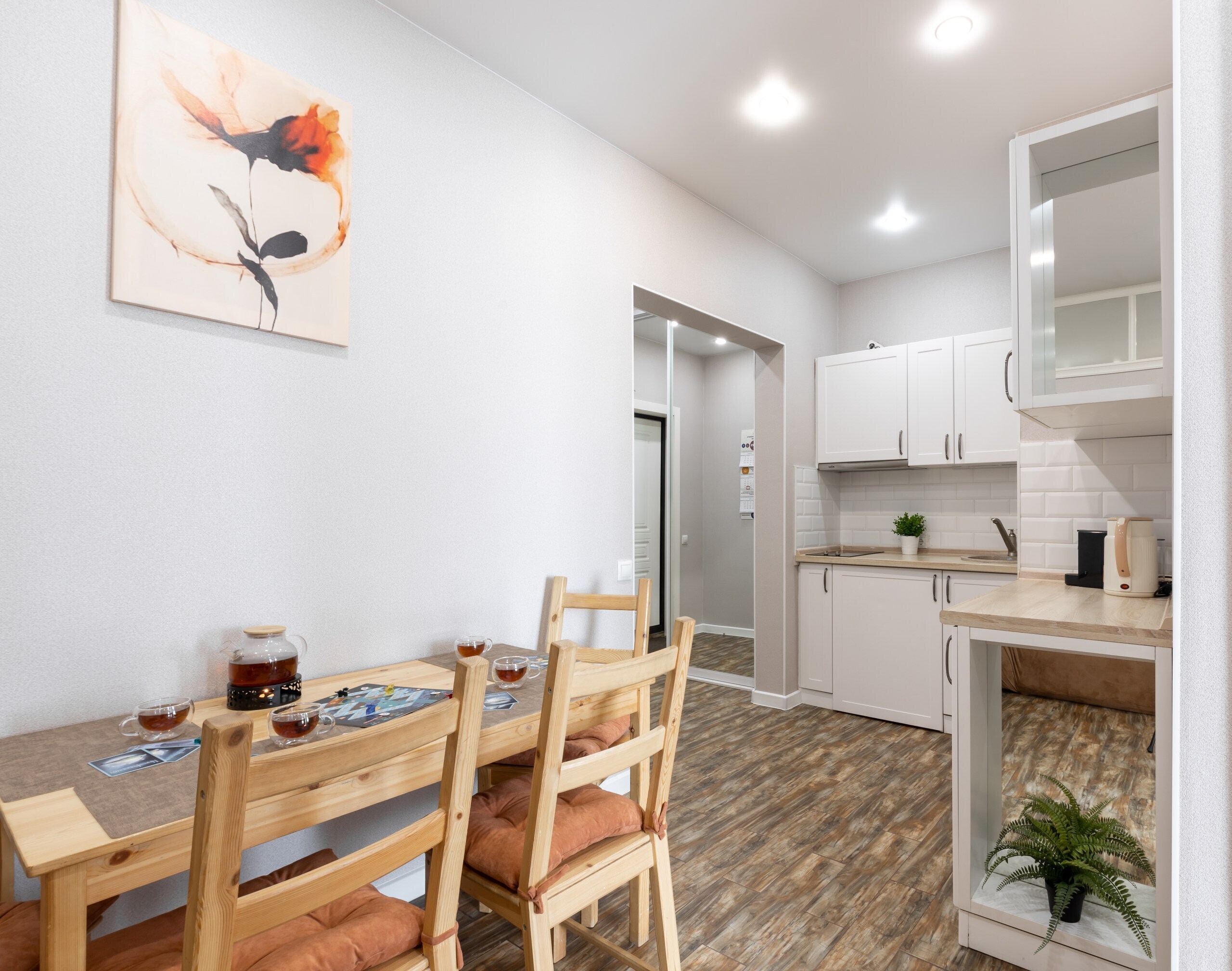 Квартира состоит из 2 комнат: уютной спальни с большой 2-спальной кроватью и милой спальни с 2 кроватями, что позволяет разместить до 4 гостей. И гостиной, объединенной с просторной кухней. В гостиной установлен комфортный диван. Особое преимущество - полноценная мини-сауна из натуральных материалов в просторной ванной комнате, где Вы сможете расслабиться и отдохнуть после насыщенного дня.