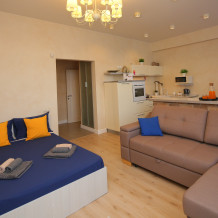 Уютная студия ждёт своих гостей в Лисихе. Развитая инфраструктура: парки, кафе, магазины, аптека, детские площадки. Транспорт в любую точку города. В жилом комплексе есть большая супермаркет, салон красоты, фитнес-клуб. Рядом банки, рестораны, кафе. Диагностический центр и кинотеатр «Баргузин» в шаговой доступности. Аэропорт в 5 минутах езды.