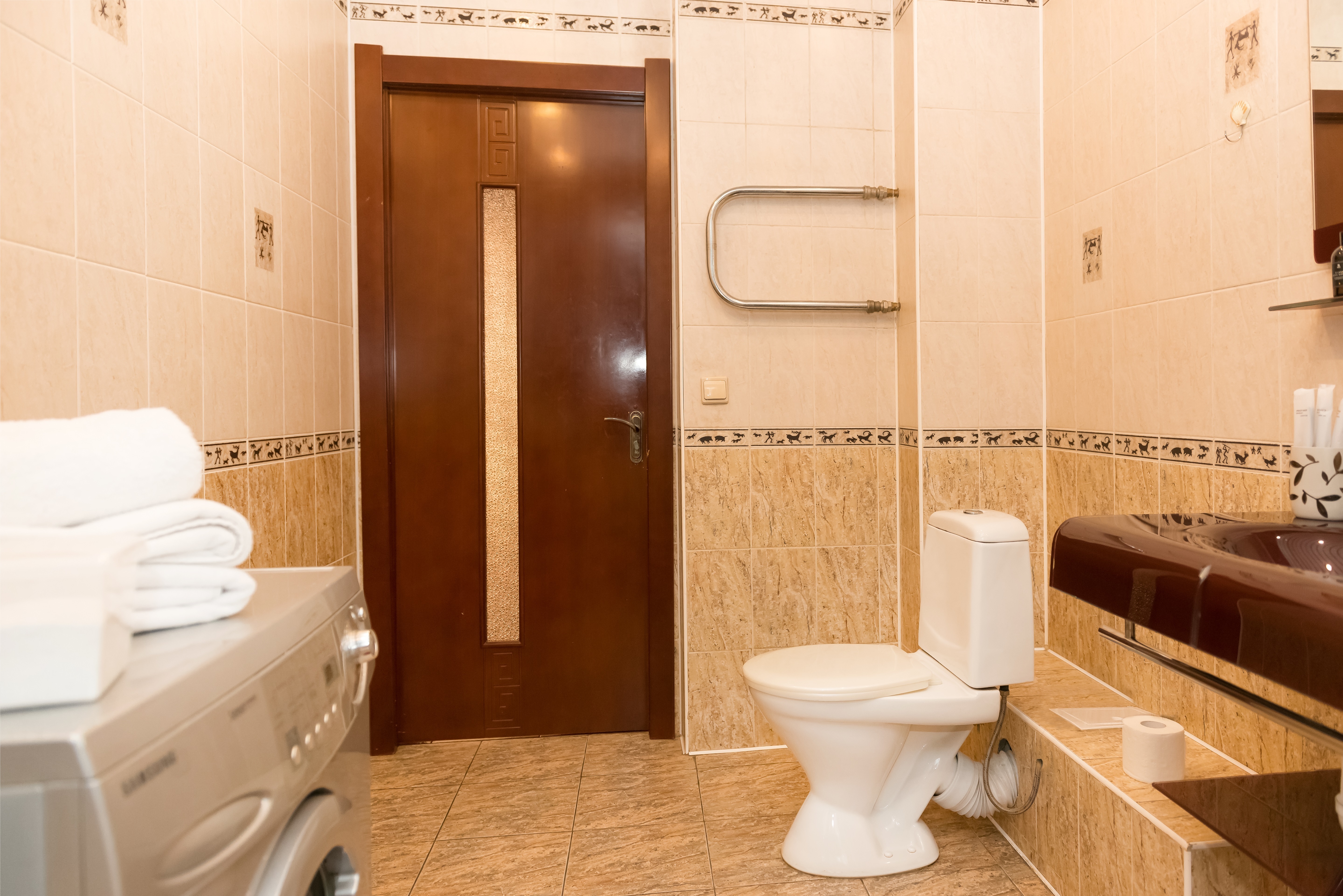 Просторный, совмещенный санузел, душевая (стиральная машина, фен, полотенца).