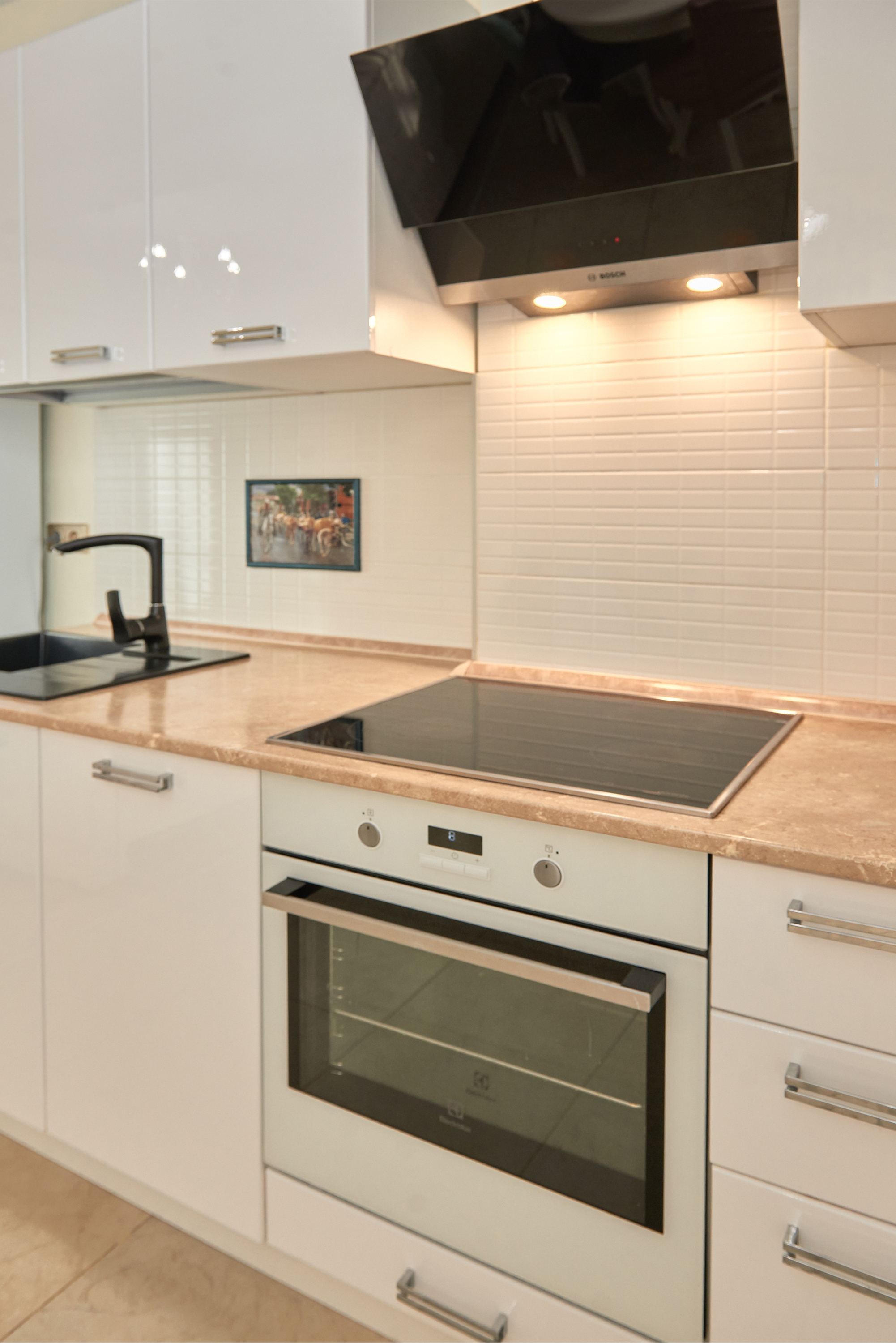 - Бытовая техника: телевизор, стиральная машина, электрическая плита, холодильник, микроволновая печь, духовка, электрочайник, посудомоечная машина, фен, утюг.