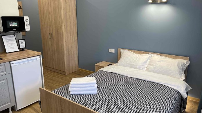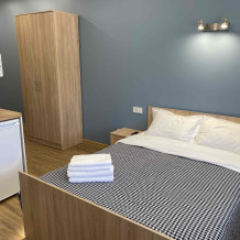 Апартаменты оборудованы всем самым необходимым: телевизор, Wi-Fi, посуда, фен, утюг, гладильная и сушильная доски, микроволновая печь, стиральная машина, холодильник.