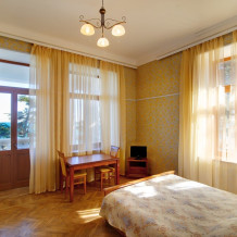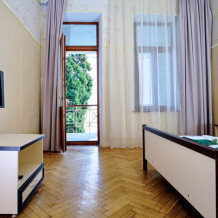 Чудесный однокомнатный номер, с романтическим местом для чаепития с видом на парк и море. Расположен в главном корпусе в 20 метрах от пляжа. Рассчитан на двух человек с возможностью установки двух дополнительных спальных мест. Номер расположен на 1 этаже и имеет отдельный вход. Смешанный аромат моря, фитонцидов хвойных деревьев и цветов. В номере прохладно даже в самый жаркий день.