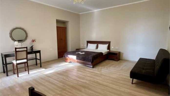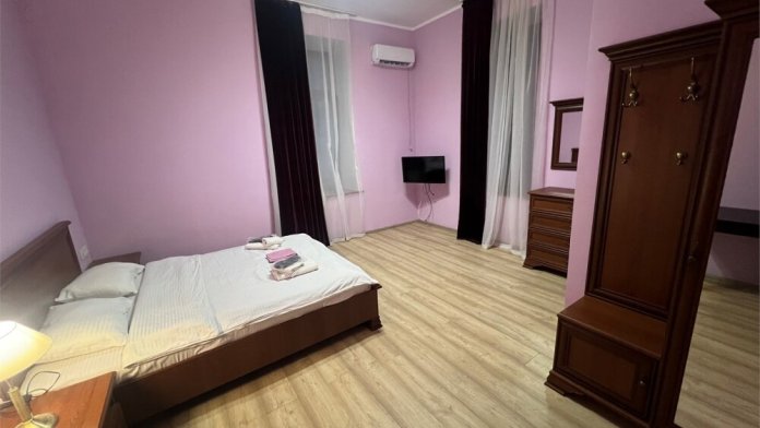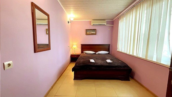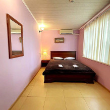В номере: санузел (унитаз, биде, ванна,) ТВ, холодильник, кондиционер, двуспальная кровать, чайник, набор мебели, лоджия 17 кв.м.