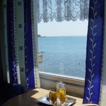 Кафе находится на берегу моря, на территории комплекса. Столики размещены на террасе, на открытой площадке под зонтиками. Отсюда открывается панорама на морские просторы, что делает трапезу еще более приятной. Посещать кафе удобно тем, кто остановился в отеле. Отдыхающих ждет простая, уютная атмосфера и вкусная, сытная еда по приемлемой цене. В меню входят комплексные обеды и отдельные блюда на заказ. На выбор предоставляются первые, вторые блюда, каши, салаты– все, что нужно для здорового питания, блюда, приготовленные на углях, жару, детское меню.