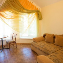 Предлагаем Вашему вниманию номера класса Улучшенный семейный с собственной мини-кухней, которые обеспечены всем необходимым для беззаботного отдыха. Кондиционер спасет Вас от знойной жары, а спутниковое телевидение разнообразит досуг. Отель гарантирует идеальную чистоту и наивысший уровень сервиса за доступную цену. Отдых в Крыму семьей – увлекательная сказка.