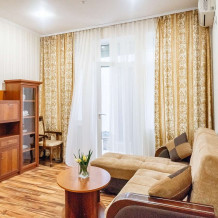 Номера с удобствами: кондиционер, холодильник, кабельное телевидение LCD, Wi-Fi, сейф, чайник. Для маленьких гостей предоставляется детская кроватка.