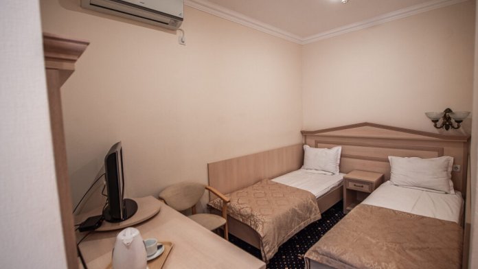 Есть номера с двухспальной кроватью и с 2 раздельными кроватями.