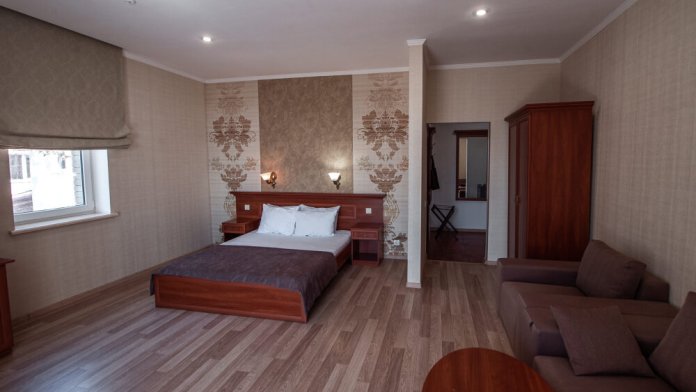 Удобные и просторные номера, современный дизайн, стильная мебель, высокие потолки, большие туалетные комнаты.