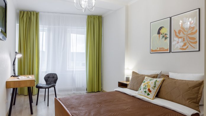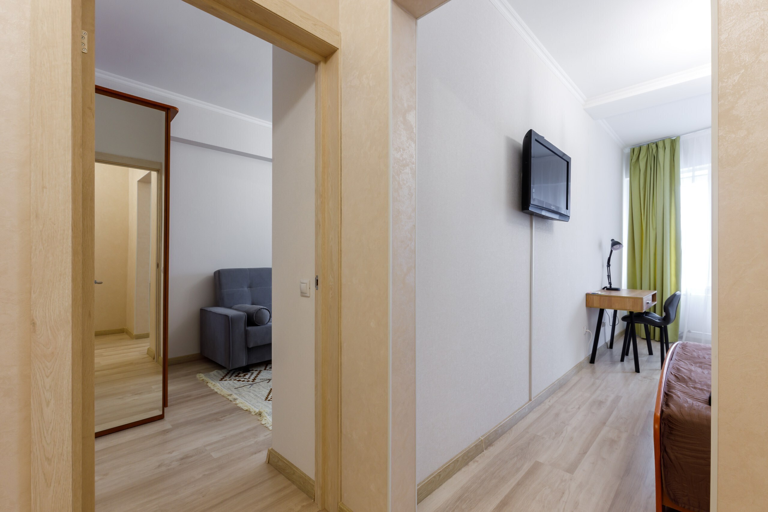 Двухкомнатная квартира, рассчитанная на шесть человек. Комфортный вариант для командировок и путешествий. рядом автовокзал, деловые объекты, кафе, музеи и прогулочные маршруты. В квартире две двуспальные кровати и диван, есть быстрый интернет и ТВ. Квартира расположена на 4 этаже, в доме есть лифт.
