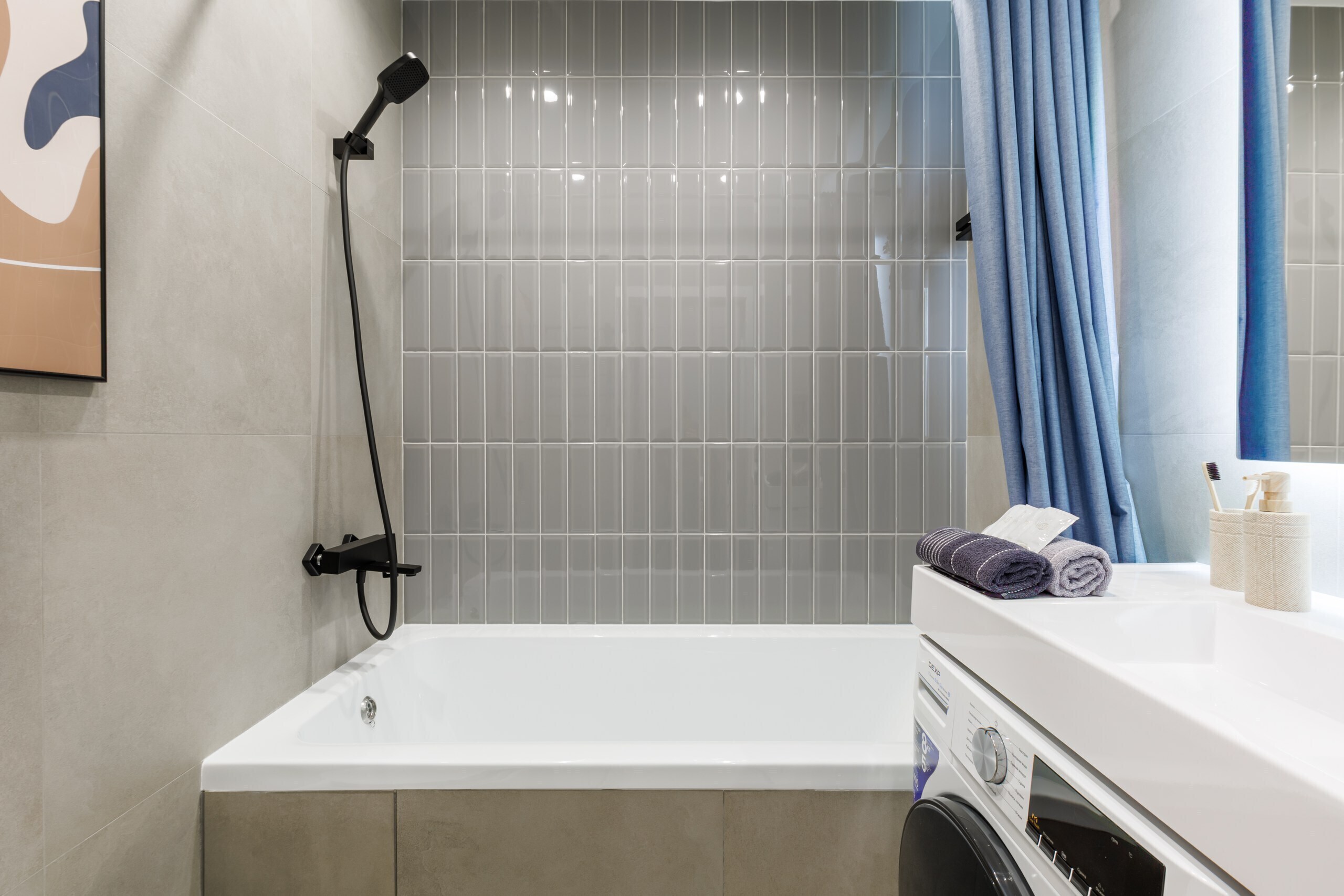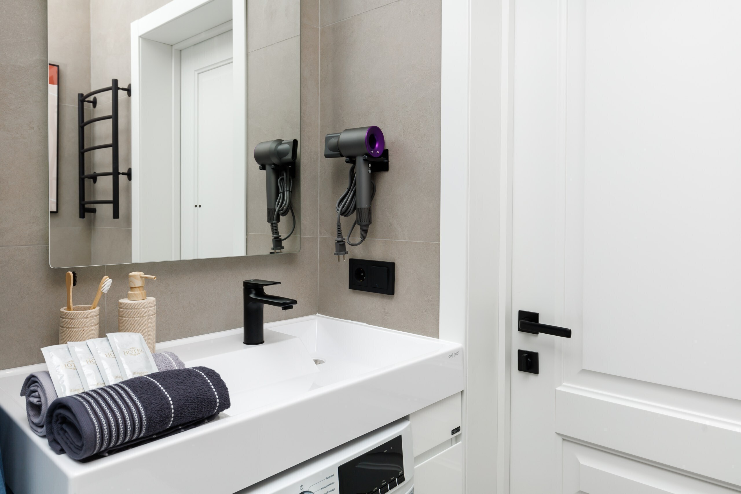 - свежая постель, махровые полотенца, бамбуковые подушки и одеяла, сушилка для белья, гладильная доска, шампунь и гель для душа, 2 зубных набора;