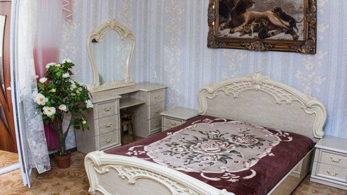 В комнате поменьше - двуспальная кровать, 1,5-спальный раскладной диван, трюмо с зеркалом,