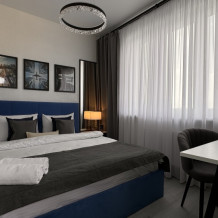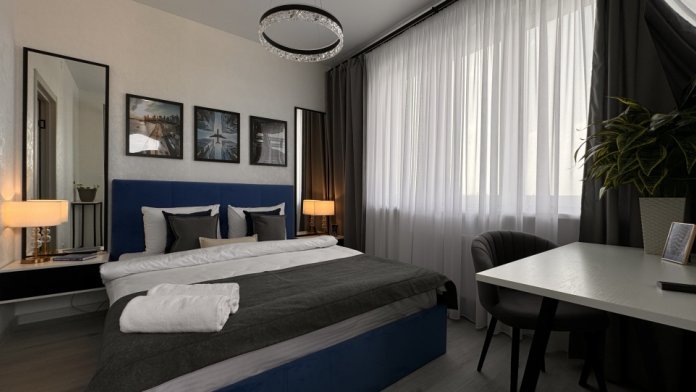 Квартира рассчитана на 4 человека, оборудована 2 комфортными двуспальными кроватями (160x200 см) с удобным матрацем, обеспечивающим качественный и здоровый сон. На каждую кровать и диван идет следующий комплект: 2 подушки, 2 наволочки, двуспальное одеяло, пододеяльник, простынь.