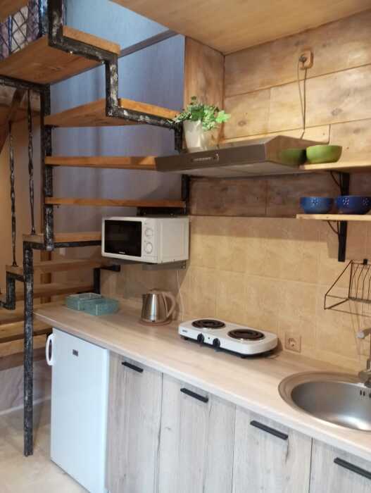 В доме располагаются две спальни на втором этаже и небольшой холл и кухня на первом этаже. Для комфортного проживания имеется необходимая бытовая техника, кухонная посуда. На комфортной кухне есть электроплита, столовые приборы, набор посуды, электрочайник, микроволновая печь, холодильник. В доме есть утюг, жк-телевизор, гладильная доска, москитные сетки на окнах, кабельное тв, кондиционер, интернет Wi-Fi. В ванной есть сушилка для белья, фен, стиральная машинка, душевая кабина, туалетные принадлежности.