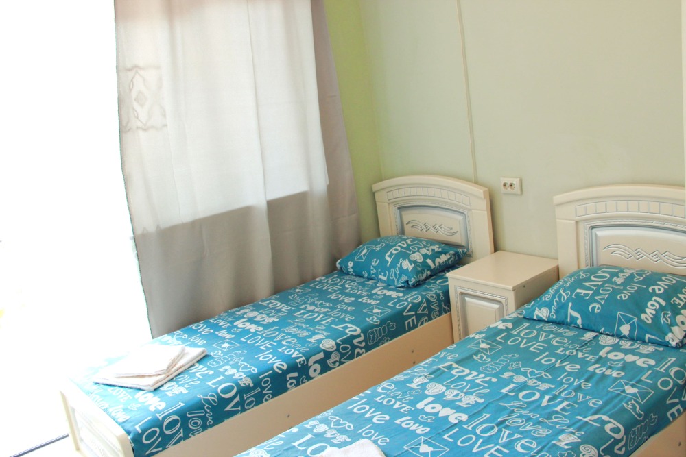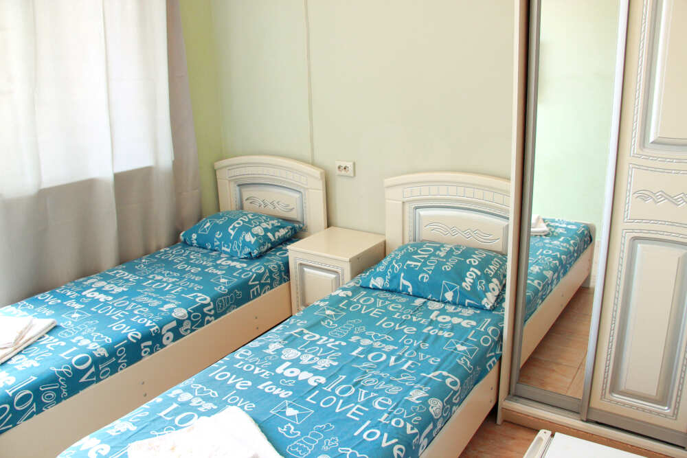 2-х местный номер категории «Эконом» - номер расположен в отдельном летнем домике – 2 раздельные кровати, прикроватные тумбочки, кондиционер, телевизор, шкаф. Санузел (душ, туалет, раковина) в номере.