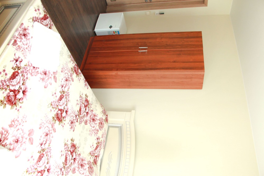 4-х местный семейный номер категории «Стандарт» - однокомнатный уютный номер, 1 этаж, 2 корпус, отдельный вход, в номере – 4 раздельные кровати, комод, 2 шкафа для одежды, журнальный стол, телевизор, кондиционер. Санузел (душ, туалет, раковина) в номере. Окна номера во двор. Рядом с номером стиральная машина и летняя кухня.
