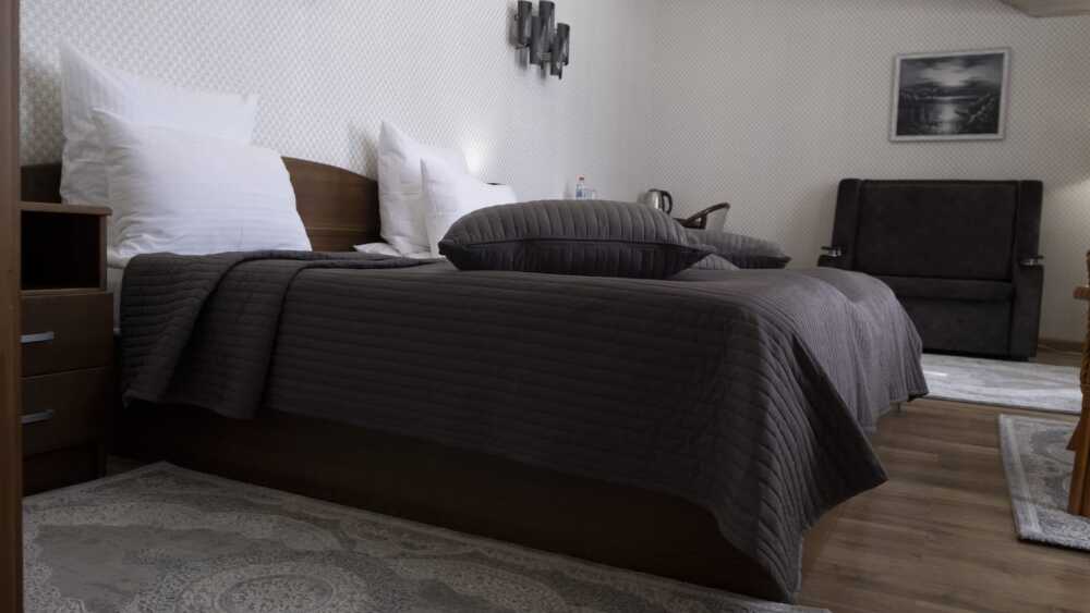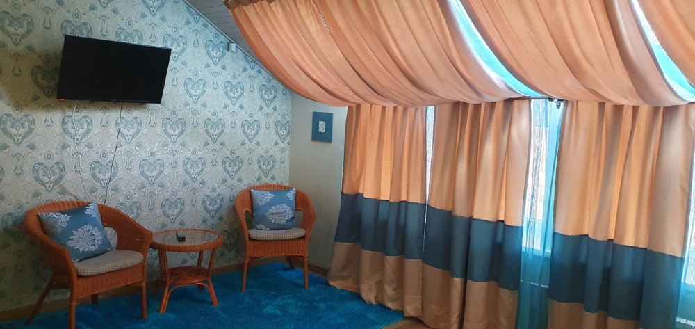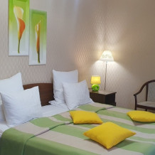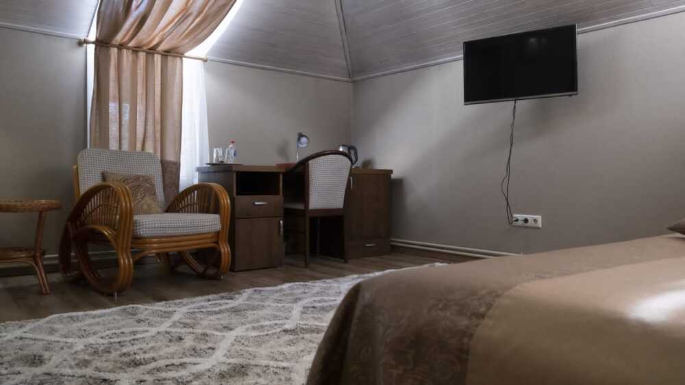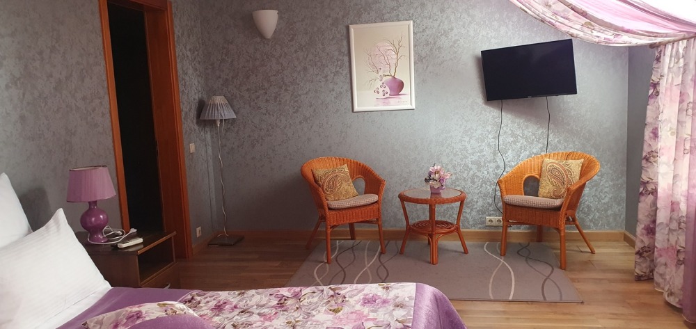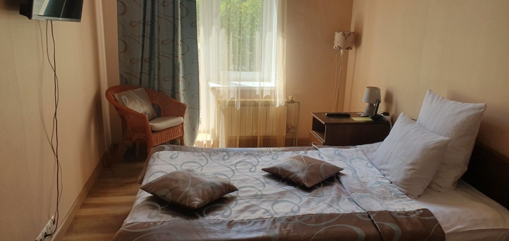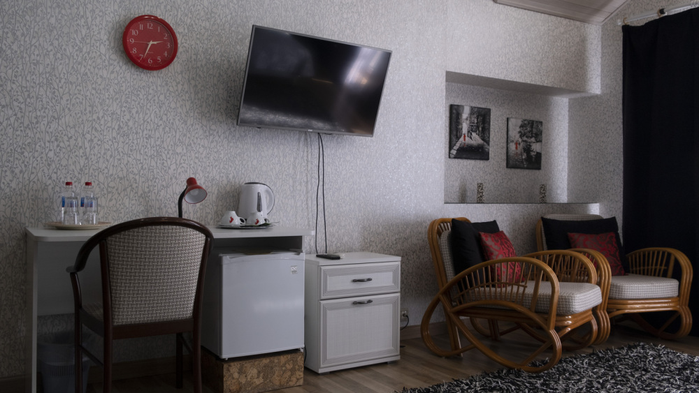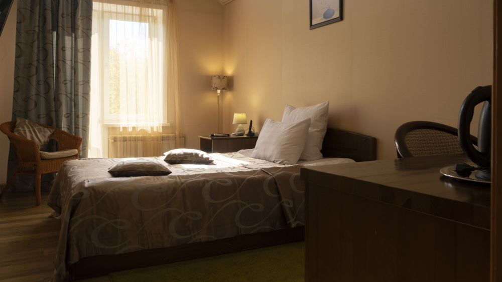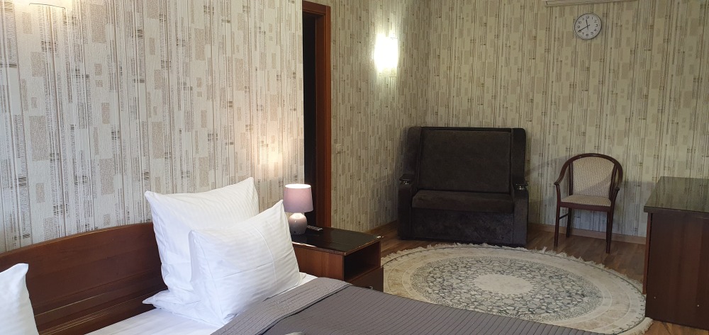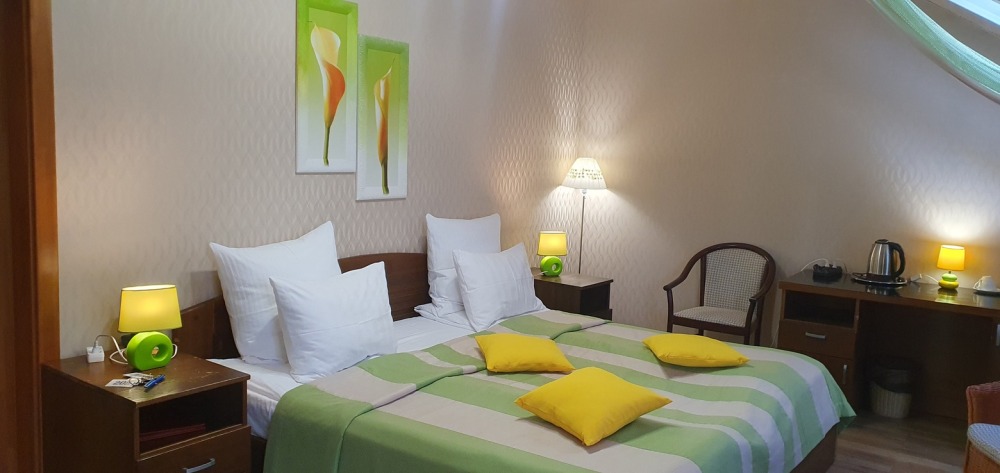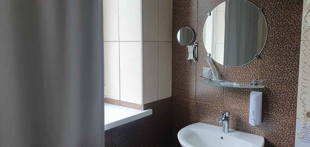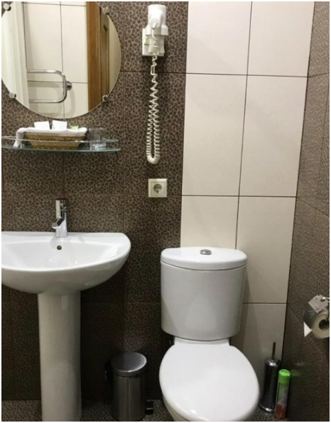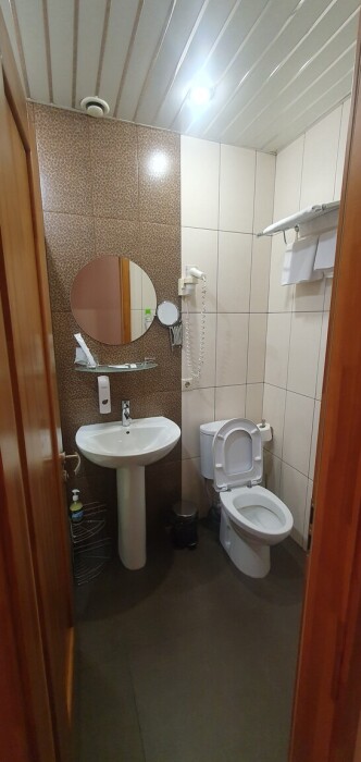 В каждом номере: халат, тапочки, бритвенный набор, гель для душа, зубной набор, мыло, шампунь, шапочка для душа, полотенца.
