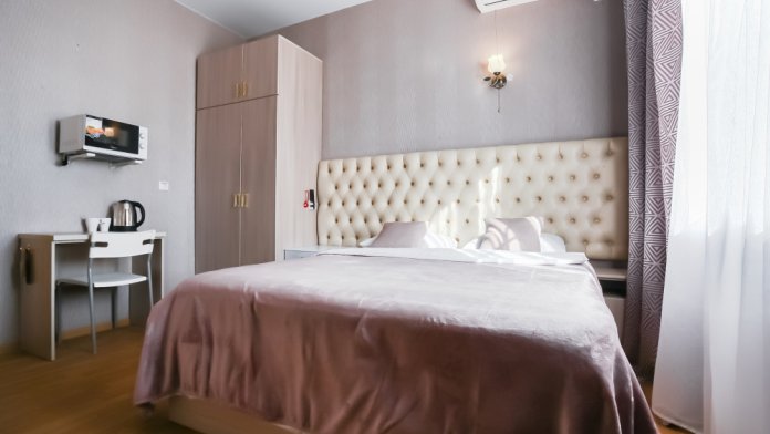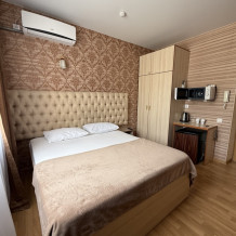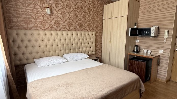 Гости могут забронировать номера категории Стандарт с односпальной кроватью или с двумя односпальными кроватями. В номерах есть кровать, стол и стул, большой вместительный шкаф, зеркало, телевизор, микроволновая печь, чайник, холодильник, кондиционер. Отдельная ванная комната с душем, раковиной, зеркалом, феном и унитазом.