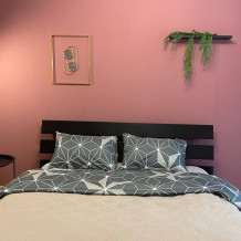 Двуспальная кровать, раскладной диван, Smart TV телевизор, Wi-Fi, электрическая плита, микроволновая печь, чайник, холодильник, вся необходимая посуда и кухонные принадлежности, стиральная машина, утюг, фен, комплект постельного белья, комплект полотенец, гигиенический набор (зубной набор, шампунь, бальзам, гель для душа, мыло, ватные диски и палочки), тапочки.