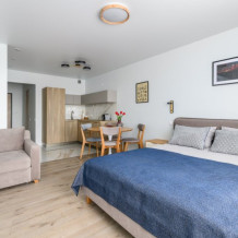 Уютная студия расположена в Красногвардейском районе Санкт-Петербурга. Поблизости находится красивая набережная и знаменитый Большеохтинский мост, на противоположном берегу открывается великолепный вид на Смольный собор. В пешей доступности Никольская церковь и Георгиевский сквер. В 2 км находится парк имени 50-летия Октября. Район тихий: рядом большое количество школ и детский садов, поликлиника, несколько торговых центров, крупнейший и ближайший из них «Охта Молл». До центра города вы можете добраться за 15 минут на автомобиле. До станции метро «Ладожская», «Новочеркасская», а также Ладожского вокзала ходят автобусы, время в пути- 20-25 минут. До аэропорта час езды. Автобусные и трамвайные остановки прямо рядом с домом. Вы также можете воспользоваться бесплатной парковкой рядом с апартаментами.