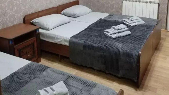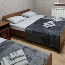 В номере: 1 двуспальная и 1 односпальная кровати или 3 односпальные кровати.