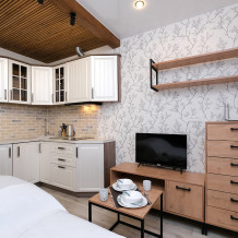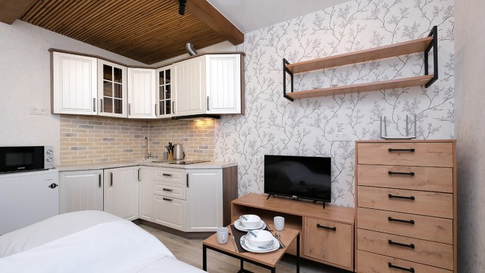 Прекрасная студия, современный ремонт, для тех кто ценит комфорт. Вид из окна на голубое озеро и набережную, создает настроение.