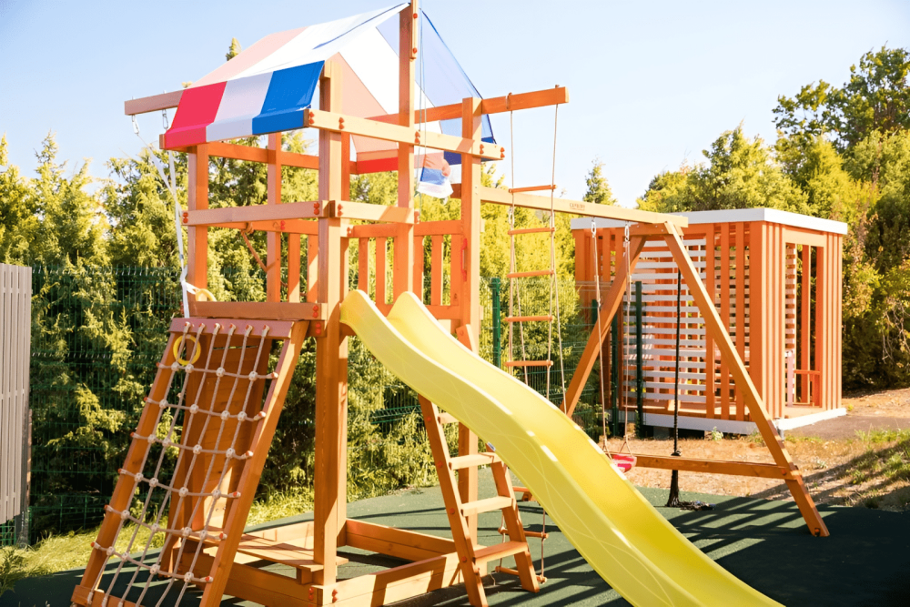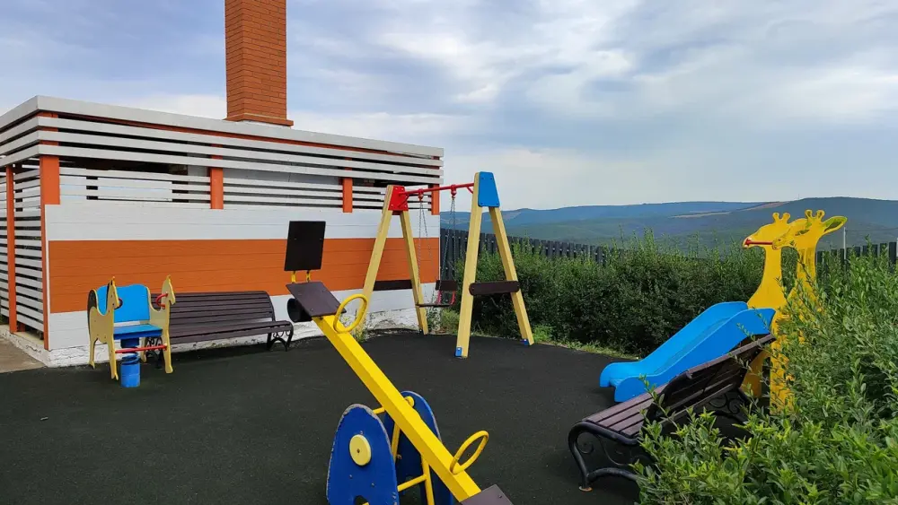 - На территории расположена большая детская площадка, где Ваши дети могут играть в активные игры на свежем воздухе;