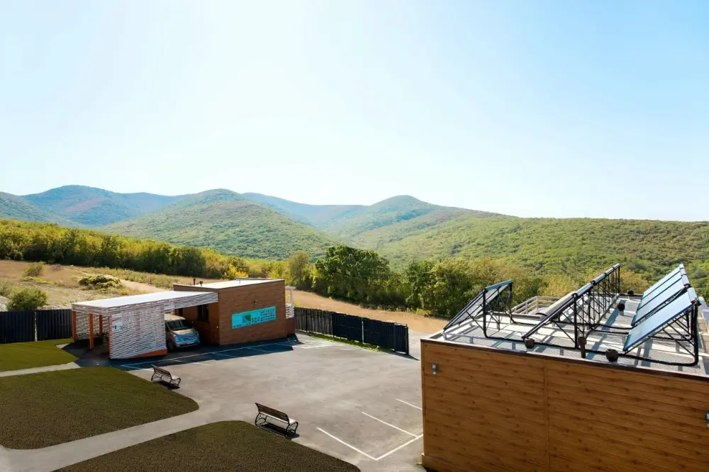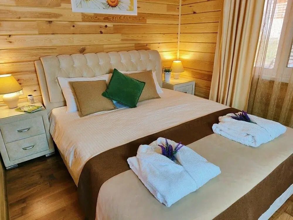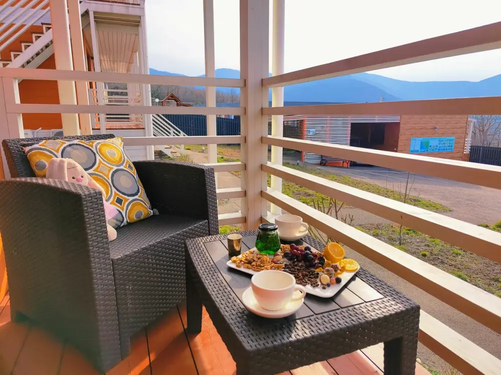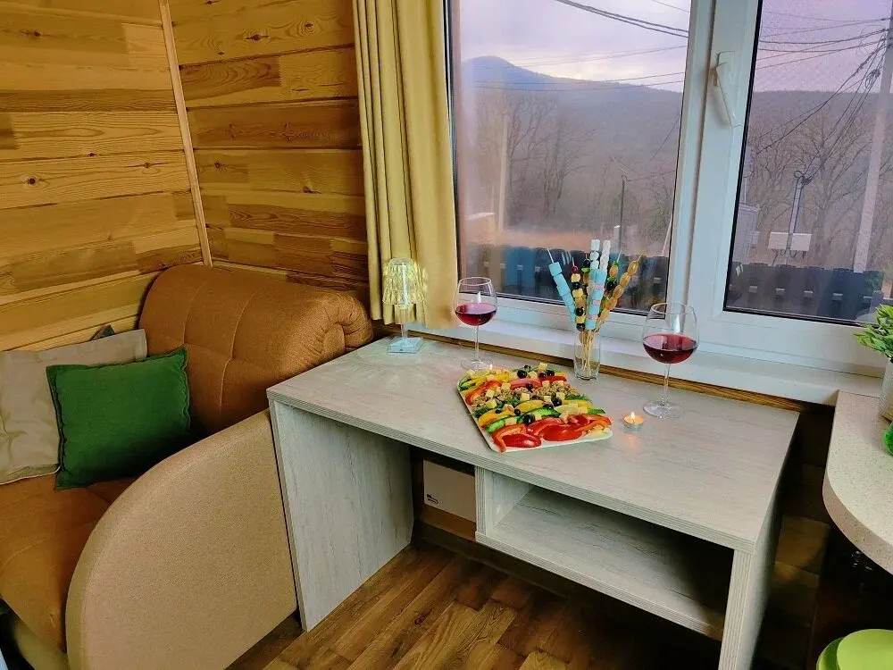 - Мы находимся в окружении прекрасной природы. Пейзажи так и манят провести время в лесных горах. А для создания романтичной атмосферы Вы можете приобрести корзинку для пикника в которой: плед для удобства, книга для приятного времяпрепровождения или фотосессии, а также бокалы, вино, багет, сыр и фрукты.