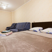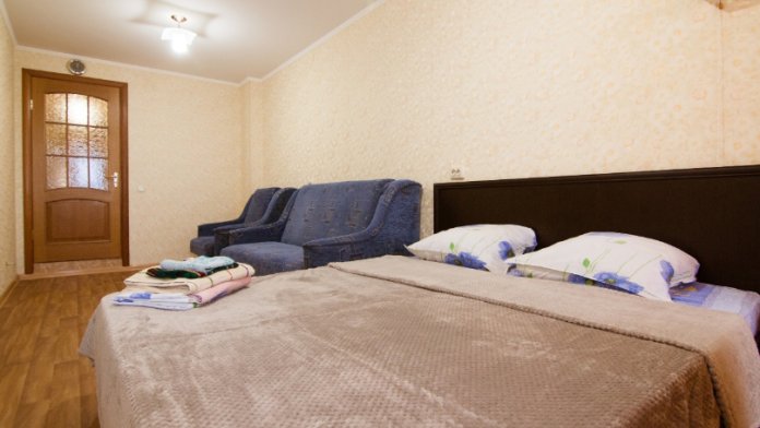 - Большой холодильник, электроплита, электрочайник, микроволновка, посуда для приготовления пищи, стол и стулья;