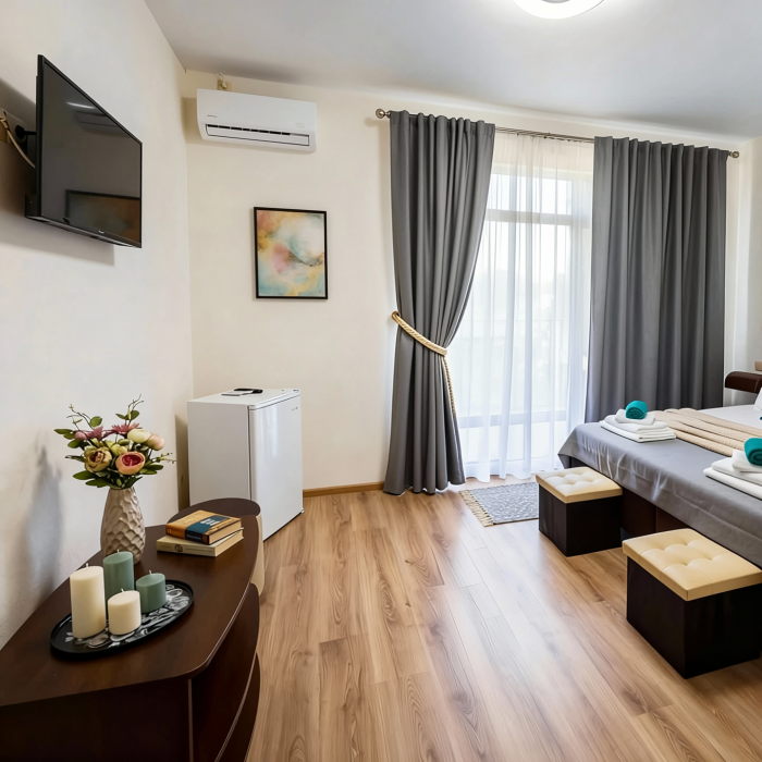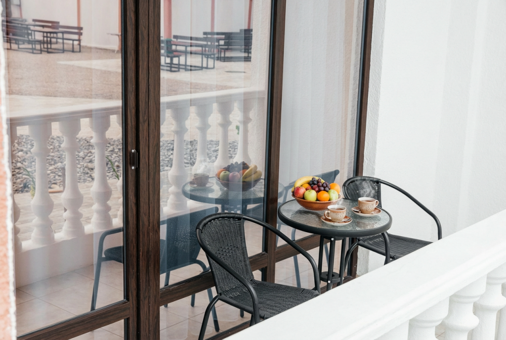 В каждом номере есть свой балкон, на котором можно провести вечер за чашечкой ароматного чая. В стоимость номера входит: