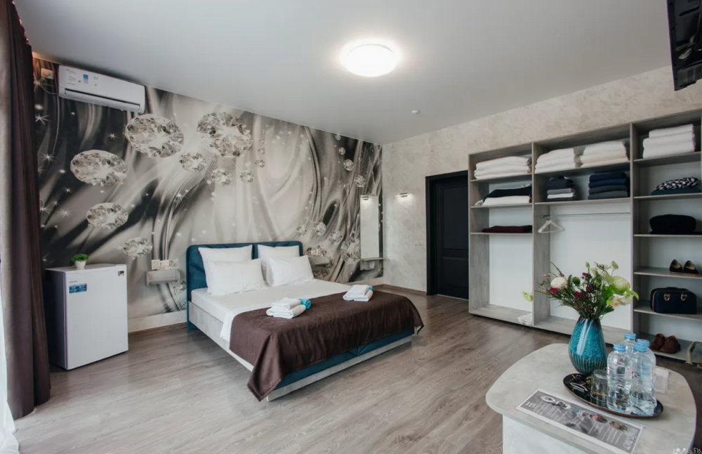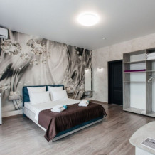 В номере двухспальная кровать, возможно доставить доп. место для размещения 3-го человека. Так же возможно разделить кровати.