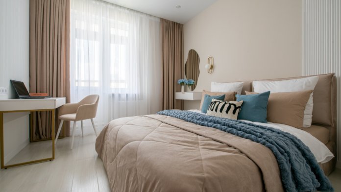 - Удобную двуспальную кровать с ортопедическим матрасом и раскладной диван для двух дополнительных мест.