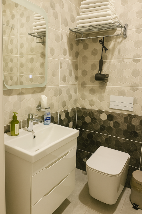 • собственный санузел (фен. полотенца, гигиенические принадлежности)