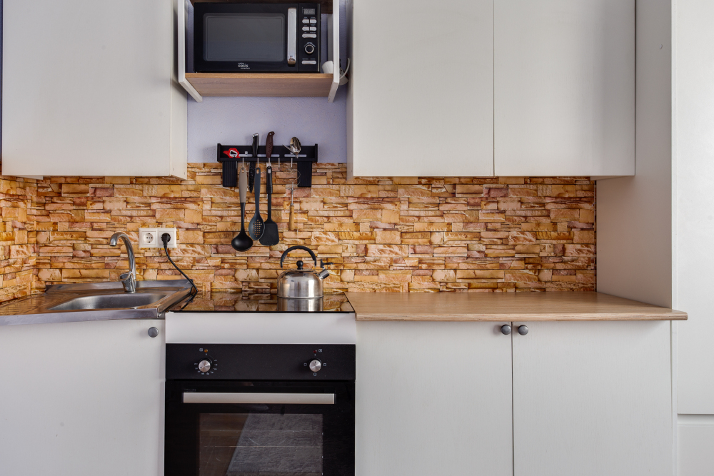 - Бытовая техника: холодильник, микроволновка, духовка, варочная панель, утюг, фен, гладильная доска, стиральная машина
