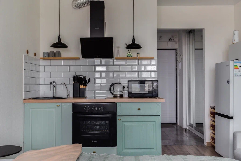 - Вся техника: холодильник, плита, СВЧ, стиральная машина , ТВ, Wi-Fi