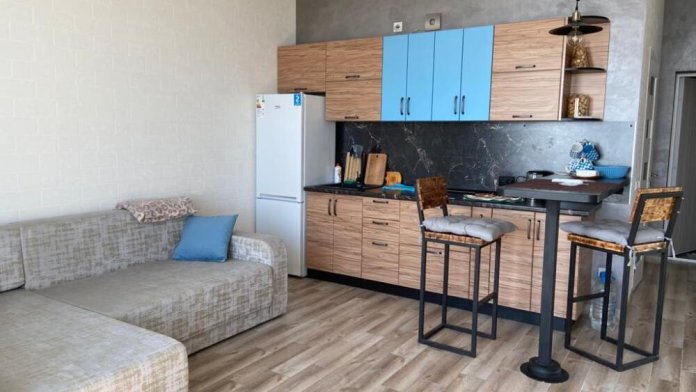 1-комнатная студия 40 кв.м. с дизайнерским ремонтом и мебелью на 2-м этаже с балконом с видом на море и замок «Ласточкино гнездо».