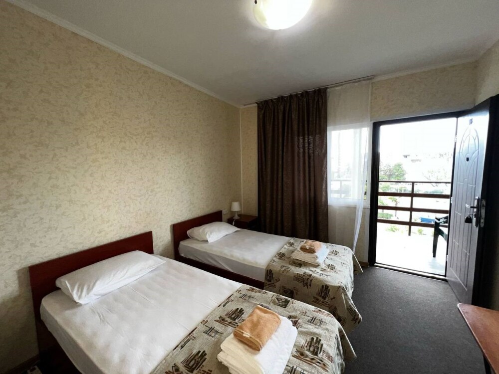 Кровати: двуспальная или 2 односпальные. Балкон общий.