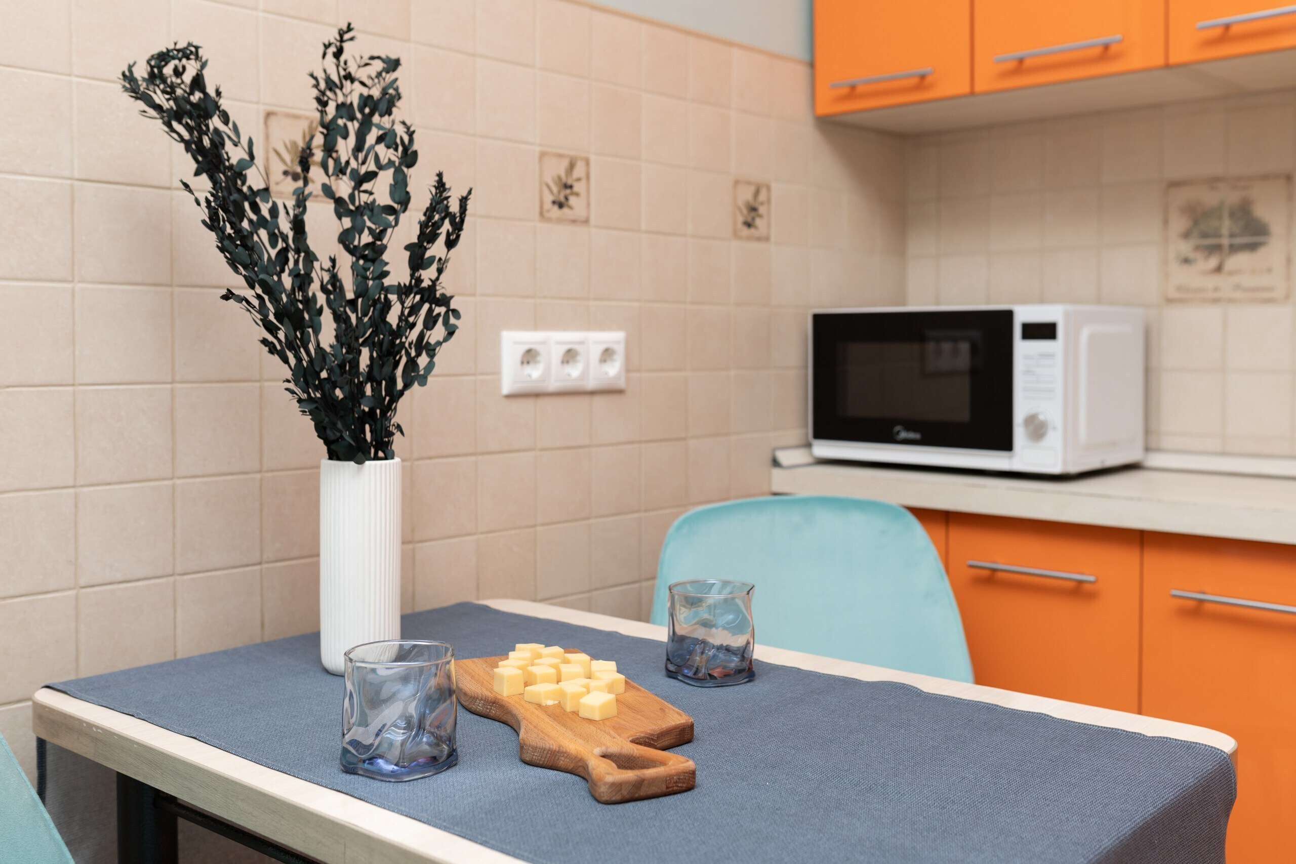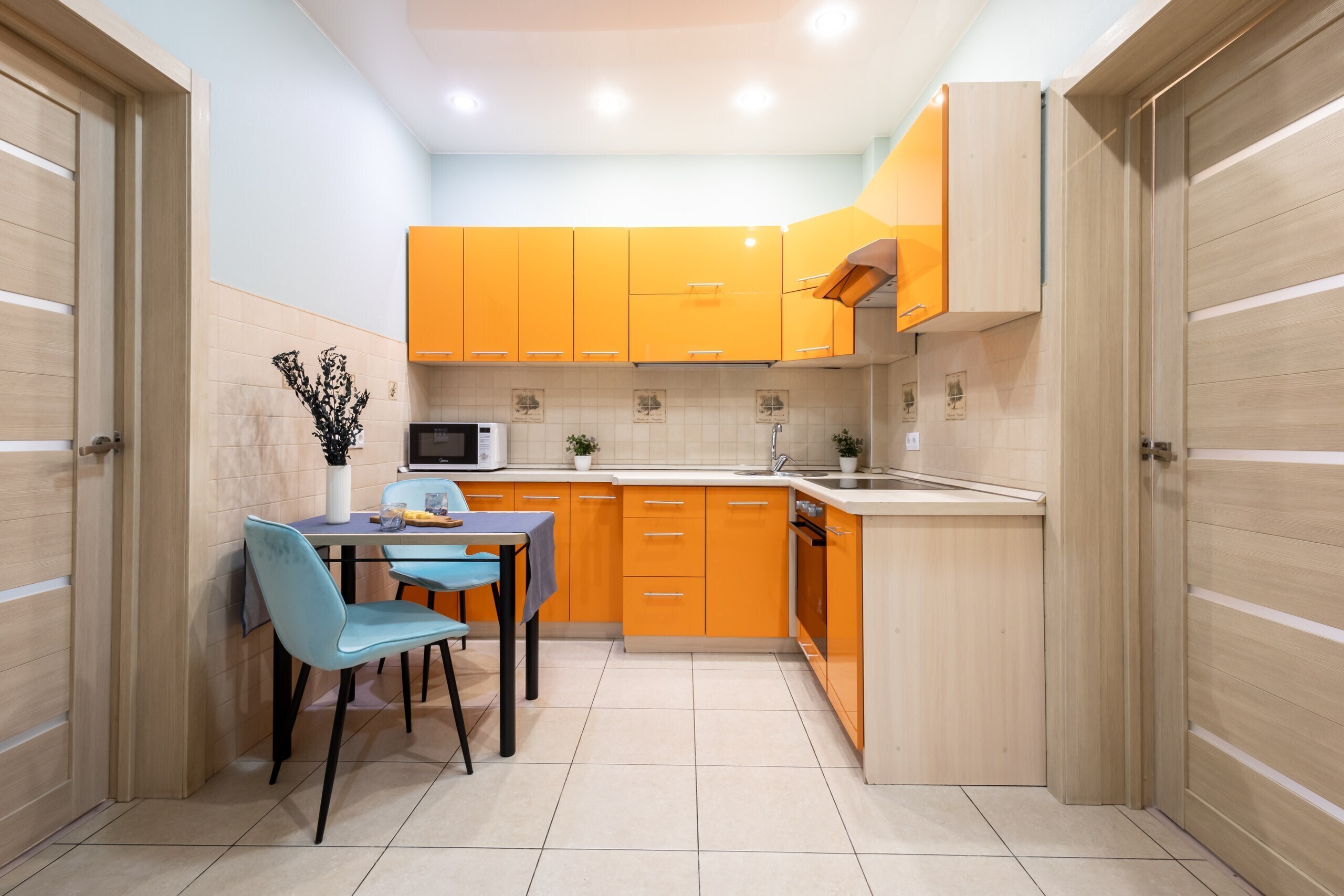 Полностью оборудованные кухни с посудой и столовыми приборами.