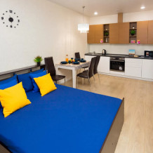 Рядом с апартаментами: Диагностический центр и кинотеатр Баргузин в шаговой доступности До аэропорта 10-15 минут на автомобиле В жилом комплексе есть супермаркет, салон красоты, фитнес-клуб Рядом банки, рестораны, кафе, большая детская площадка.