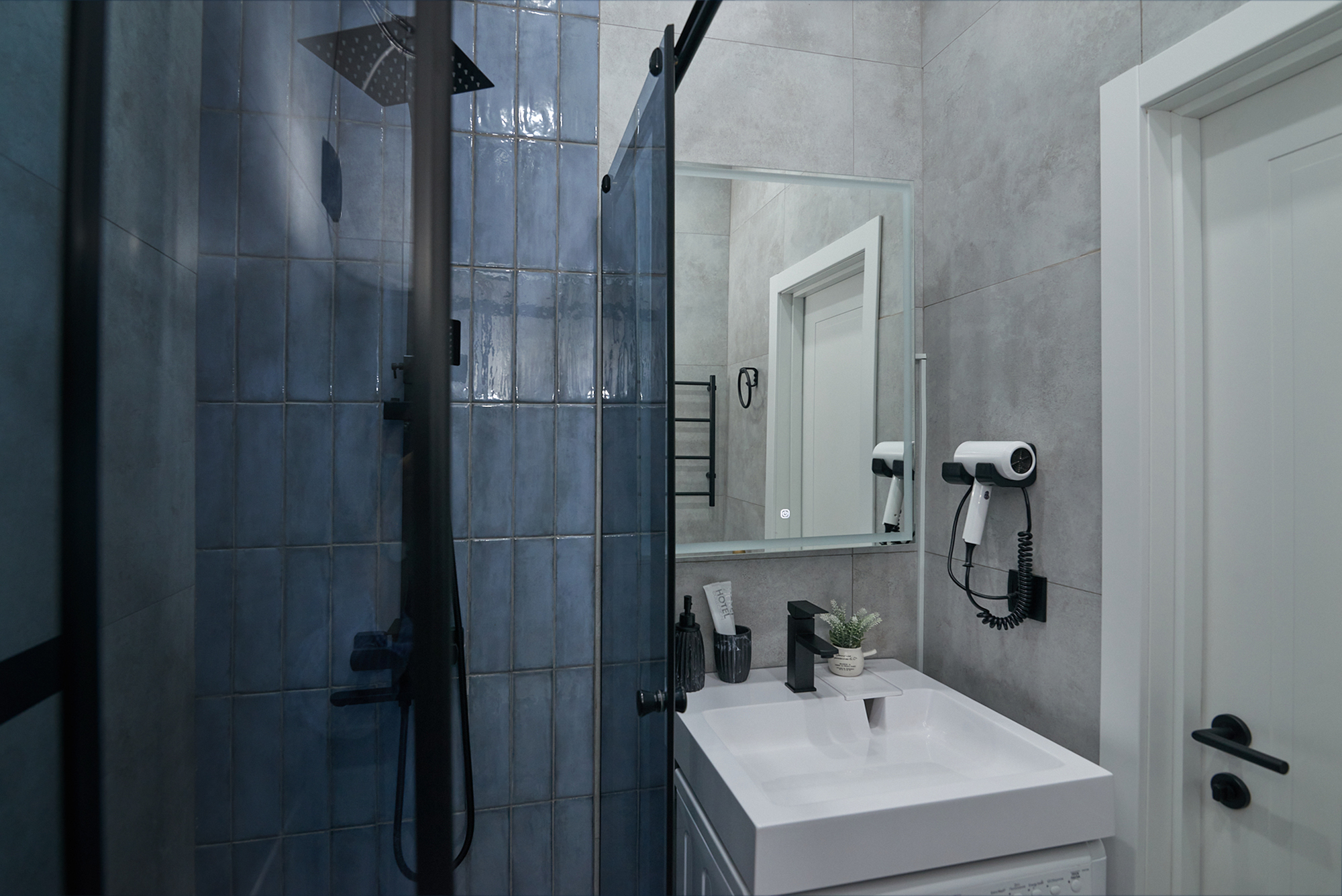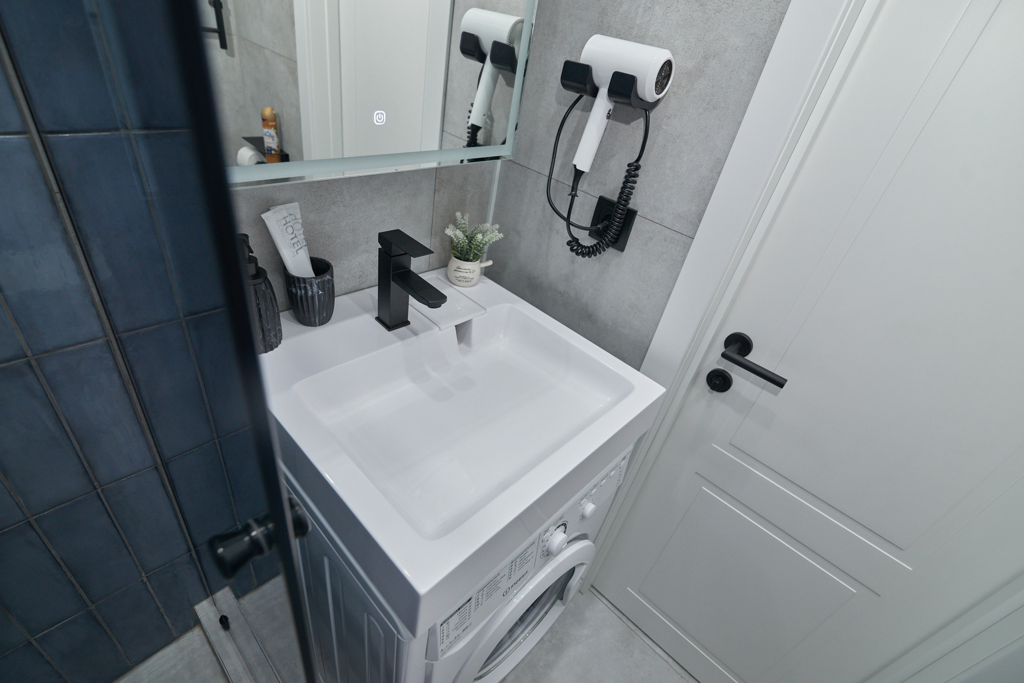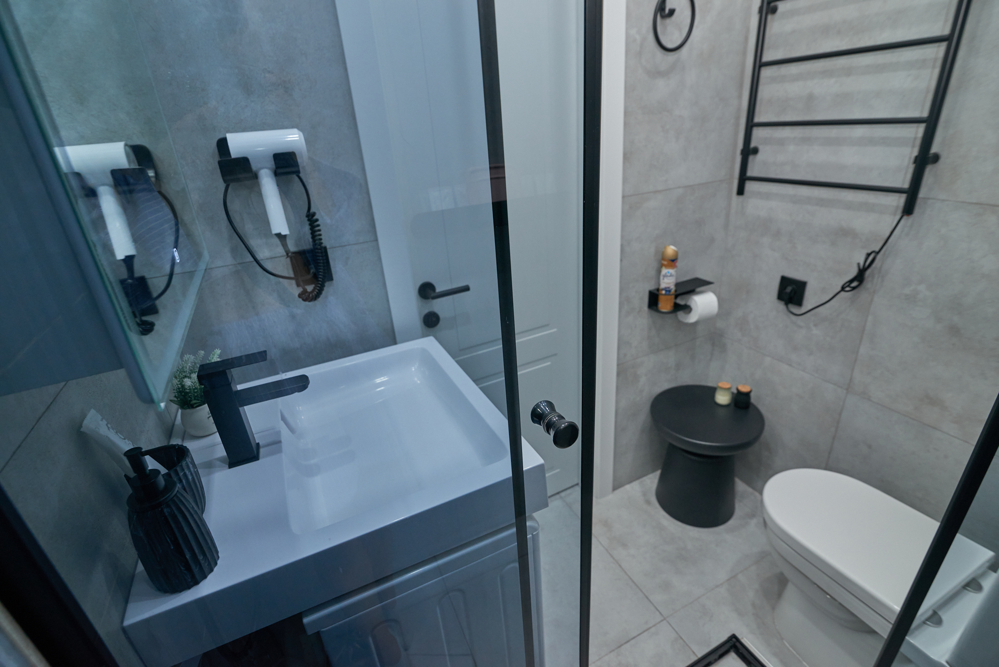Просторный, совмещенный санузел, душевая (стиральная машина, фен, полотенца).