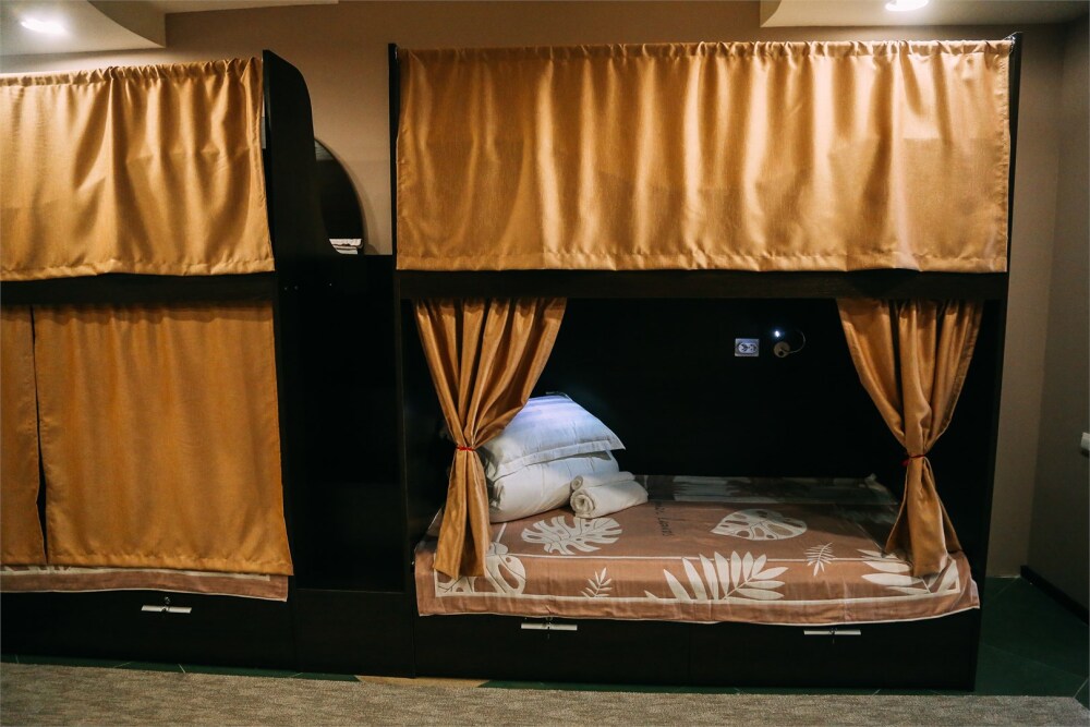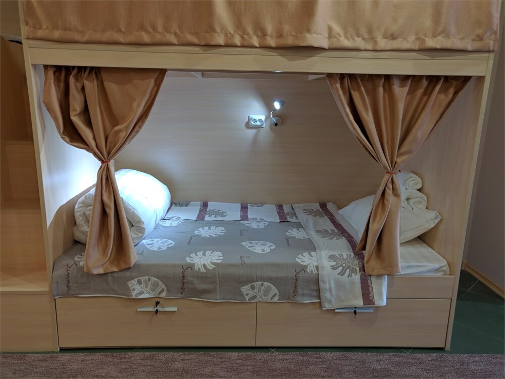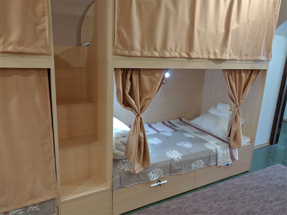 Уютный, просторный, светлый номер, на 6 человек. Индивидуальное освещение, розетки, шкафчики на замке