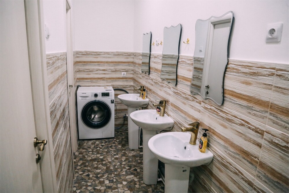 Гости пользуются общей ванной комнатой с душем и одноразовыми тапочками.