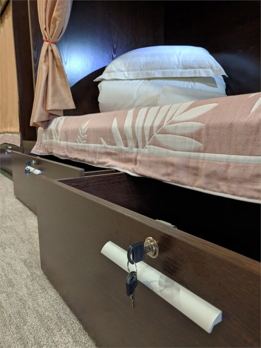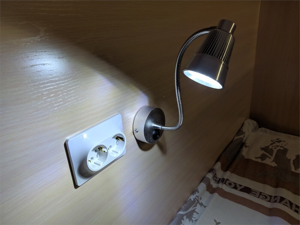 - широкие кровати с индивидуальными розеткой, светильником и полочкой;