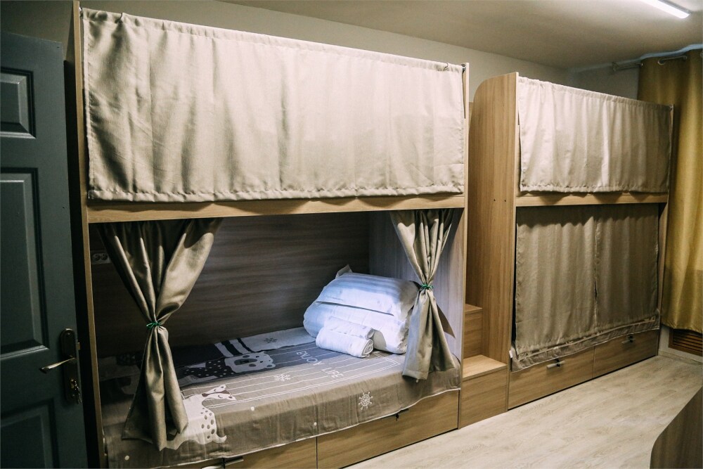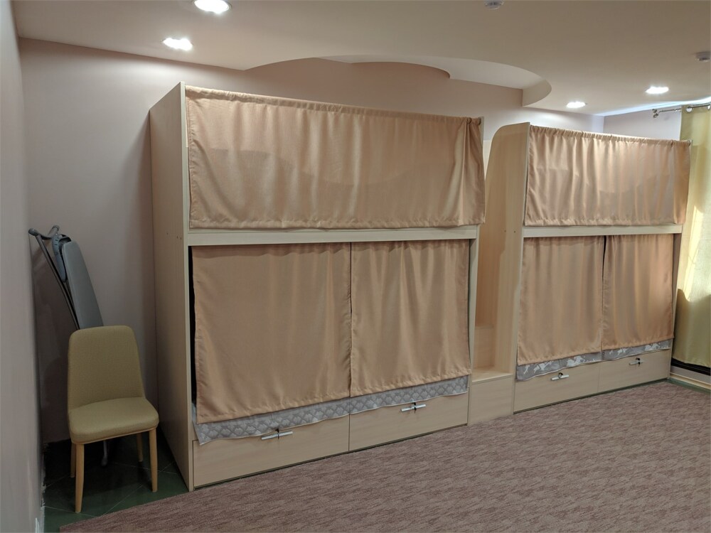 Уютный, просторный мужской номер на 10 человек, индивидуальные розетки, освещение и шкафчики на ключе