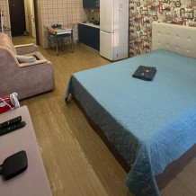 - Студия с двуспальной кроватью и мини диваном отличный вариант для отдыха и проживания с детьми.