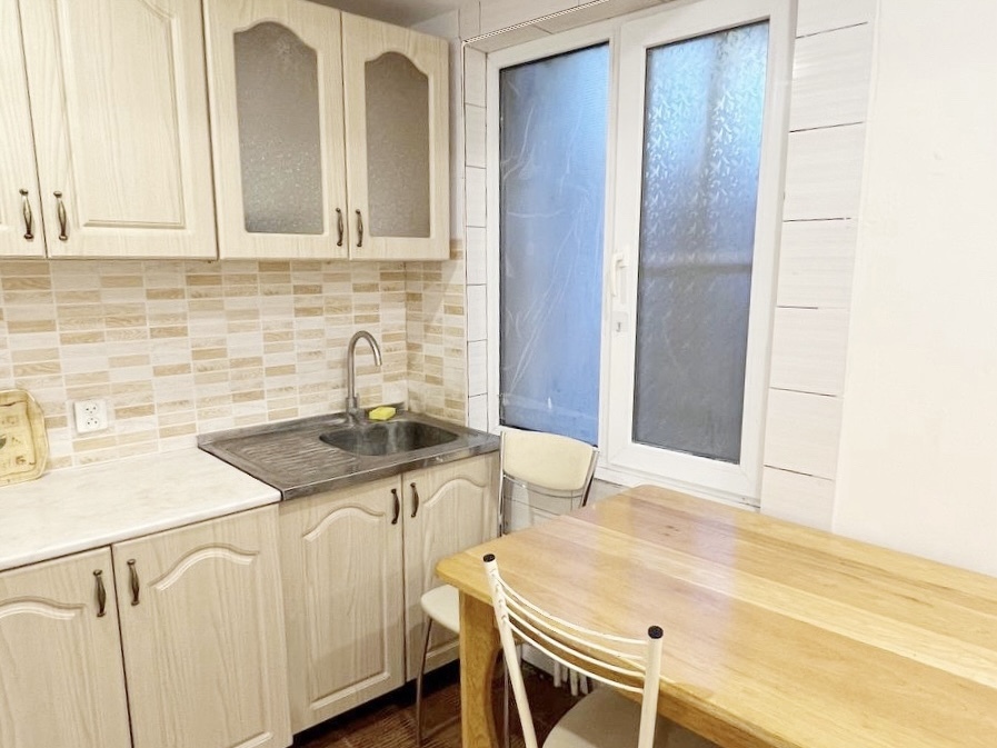 Номер находится на первом этаже гостевого дома, с отдельным входом и небольшим балконом с мебелью (стол, стулья)