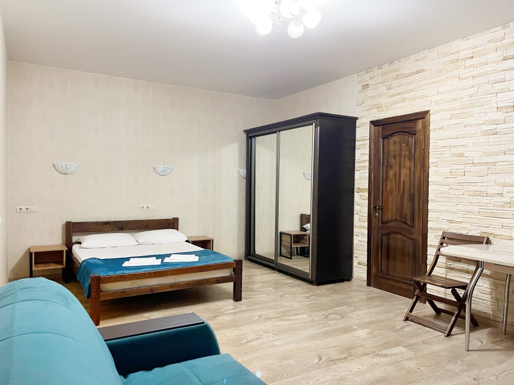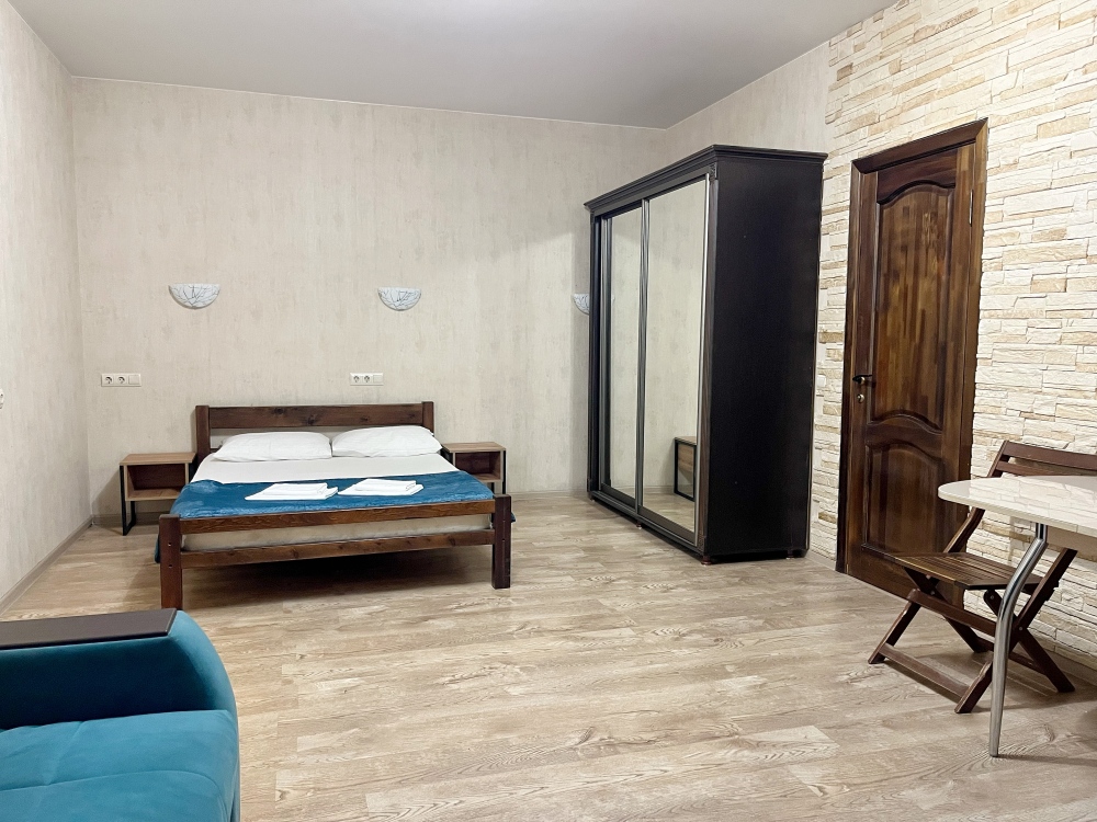 В номере имеется двуспальная кровать и комфортный диван-кровать с ортопедическим основанием на 1−2 гостя (ширина 130см) смарт-телевизор, небольшой холодильник, сплит. система, шкаф для одежды, тумбочки. Сан узел (душ, унитаз, раковина) в номере. На этаже находится общая кухня на 4 номера с обеденными зонами