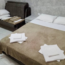 4-х местный номер комфорт плюс. Широкая двуспальная кровать с ортопедическим матрасом и раскладной двуспальный диван.