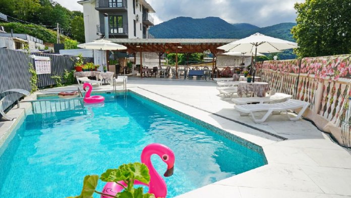 База отдыха «Солнце Кавказа» расположен в самом живописном и экологически чистом районе поселка Лазаревский, города Сочи с видом на Кавказские горы и в пяти минутах от живописного Крабового ущелья с водопадом и купелями с прозрачной чистой водой. Наша база отдыха находится на втором этаже. На первом этаже находятся складские боксы и бесплатная парковка для наших гостей, под видеонаблюдением.